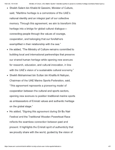 10/21/25, 10:44 AM Ministry of Culture, UAE Marine Sports Federation partner to preserve maritime heritage | Emirates News Agency