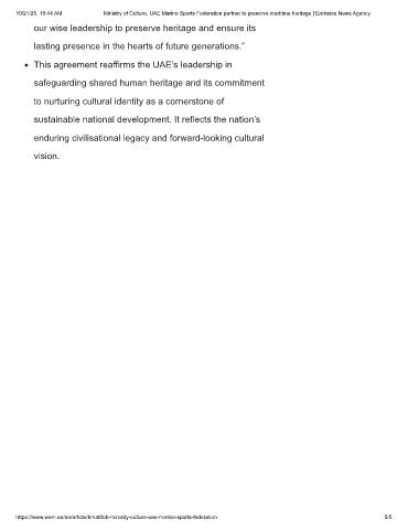 10/21/25, 10:44 AM Ministry of Culture, UAE Marine Sports Federation partner to preserve maritime heritage | Emirates News Agency
