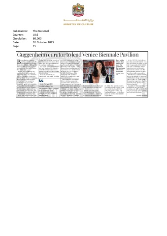 Publication: The National Country: UAE Circulation: 60,000 Date: 01 October 2025 Page: 15