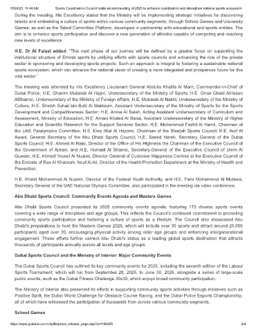 10/24/25, 11:44 AM Sports Coordination Council holds second meeting of 2025 to enhance coordination and strengthen national sports ecosystem