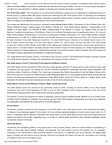 10/24/25, 11:44 AM Sports Coordination Council holds second meeting of 2025 to enhance coordination and strengthen national sports ecosystem