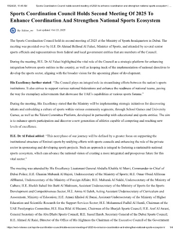10/24/25, 11:46 AM Sports Coordination Council holds second meeting of 2025 to enhance coordination and strengthen national sports ecosystem | …