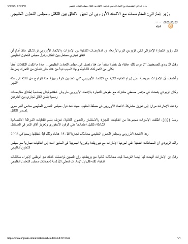 يأ مﺎﻣأ ﺎﻘﺋﺎﻋ ﻞﻜﺸﺗ ﻦﻟ ﻲﺑوروﻷا دﺎﺤﺗﻻاو تارﺎﻣﻹا ﻦﯿﺑ ﺔﯿﺋﺎﻨﺜﻟا تﺎﺿوﺎﻔﻤﻟا نإ ءﺎﻌﺑرﻷا مﻮﯿﻟا يدﻮﯾﺰﻟا ﻲﻧﺎﺛ ﻲﺗارﺎﻣﻹا ةرﺎﺠﺘﻟا ﺮﯾزو لﺎﻗ