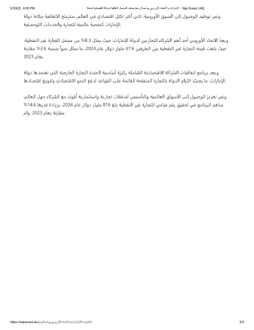 5/30/25, 4:06 PM ﺔﻠﻣﺎﺷ ﺔﯾدﺎﺻﺗﻗا ﺔﻛارﺷ ﺔﯾﻗﺎﻔﺗﻻ لﺻوﺗﻟا تﺎﺿوﺎﻔﻣ نﻼﺻاوﯾ ﻲﺑوروﻷا دﺎﺣﺗﻻاو تارﺎﻣﻹا - Nas News UAE
