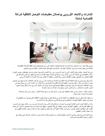 ي ف ةمهم ةطحم يبورولأا داحتلااو تاراملإا ةلود نيب ةلماشلا ةيداصتقلاا ةكارشلا ةيقافتا تاضوافم لثمت : لاقو ،ًايرامثتساو ًايراجت