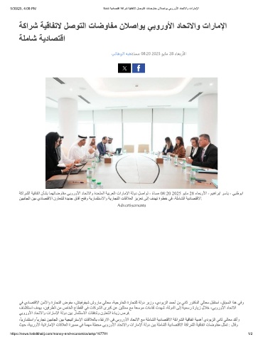 ﺔﻛاﺮﺸﻟا ﺔﯿﻗﺎﻔﺗا نﺄﺸﺑ ﺎﻤﮭﺗﺎﺿوﺎﻔﻣ ﻲﺑوروﻷا دﺎﺤﺗﻻاو ةﺪﺤﺘﻤﻟا ﺔﯿﺑﺮﻌﻟا تارﺎﻣﻹا ﺔﻟود ﻞﺻاﻮﺗ - ًءﺎﺴﻣ 08:20 2025 ﻮﯾﺎﻣ 28 ءﺎﻌﺑرﻷا - ﻢﯿھاﺮﺑا ﺮﺳﺎﯾ - ﻲﺒظﻮﺑا