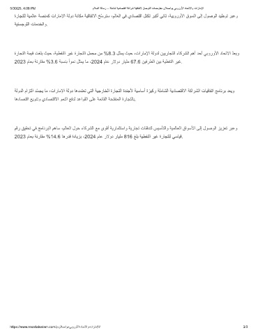 ةرﺎﺟﺗﻟا ﺔﻣﯾﻗ تﻐﻠﺑ ثﯾﺣ ،ﺔﯾطﻔﻧﻟا رﯾﻏ ةرﺎﺟﺗﻟا لﻣﺟﻣ نﻣ %8.3 لﺛﻣﯾ ثﯾﺣ ،تارﺎﻣﻹا ﺔﻟودﻟ نﯾﯾرﺎﺟﺗﻟا ءﺎﻛرﺷﻟا مھأ دﺣأ ﻲﺑوروﻷا دﺎﺣﺗﻻا ّدﻌﯾو