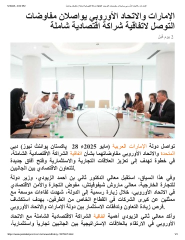 ﻲﺑد (زﻮﯿﻧ ﭧﻨﺋاﻮﭘ نﺎﺘﺴﮐﺎﭘ 28 ء2025 ﻮﯾﺎﻣ) ﺔﯿﺑﺮﻌﻟا تارﺎﻣﻹا ﺔﻟود ﻞﺻاﻮﺗ