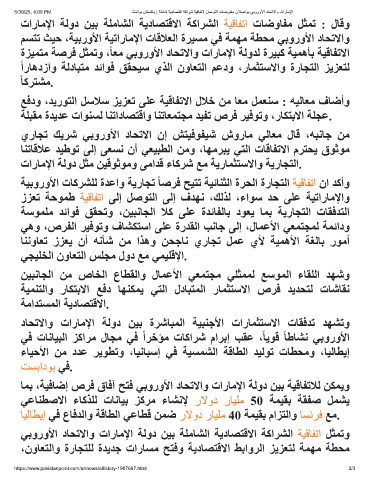ﻲﺑوروﻷا دﺎﺤﺗﻻاو تارﺎﻣﻹا ﺔﻟود ﻦﯿﺑ ﺔﻠﻣﺎﺸﻟا ﺔﯾدﺎﺼﺘﻗﻻا ﺔﻛاﺮﺸﻟا ﺔﯿﻗﺎﻔﺗا ﻞﺜﻤﺗو
