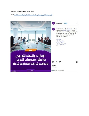 Publication: Instagram – Nas News Link: ةلماش ةيداصتقا ةكارش ةيقافتلا لصوتلا تاضوافم نلاصاوي يبورولأا داحتلااو تاراملإا