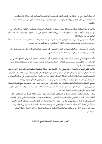 ﺘﻟا ،«ﻞﺒﻘﺘﺴﻤﻟا ﻦﻣ ﺔﻛﺮﺷ 100» ةردﺎﺒﻣ حﺎﺠﻨﻟ ًاداﺪﺘﻣا ﺗﺄﻳ ،ﻞﺒﻘﺘﺴﻤﻟا تﺎﻛﺮﺸﻟ ﺔﻴﺗارﺎﻣﻹا ﺔﻤﺋﺎﻘﻟا قﻼﻃإ نأ ،ﺮﻛﺬﻳ