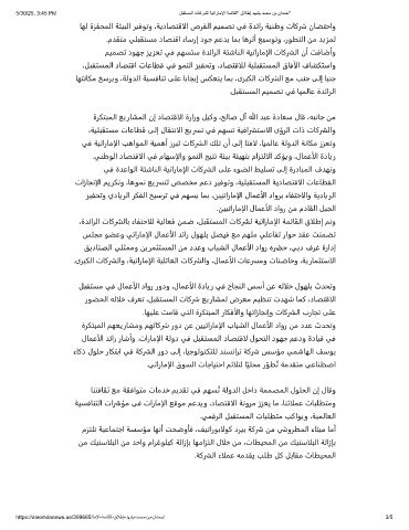 لﺎﻤﻋألا ﺪﺋار رﺎﺷأو .تارﺎﻣإلا ﺔﻟود ﻲﻓ ﻞﺒﻘﺘﺴﻤﻟا دﺎﺼﺘﻗال لﻮﺤﺘﻟا دﻮﻬﺟ ﻢﻋدو ةدﺎﻴﻗ ﻲﻓ
