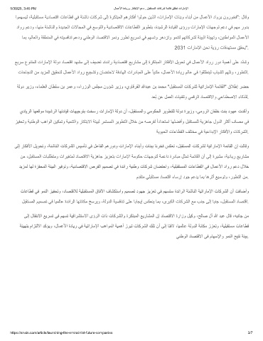 ﻊﯾرﺳ عوﻧﺗﻣﻟا تارﺎﻣﻹا ﺔﻟود دﺎﺻﺗﻗا دﮭﺷﻣ ﻰﻟإ فﯾﺿﺗ ،ةدﺋار ﺔﯾدﺎﺻﺗﻗا ﻊﯾرﺎﺷﻣ ﻰﻟإ ةرﻛﺗﺑﻣﻟا رﺎﻛﻓﻷا لﯾوﺣﺗ ﻲﻓ لﺎﻣﻋﻷا داور رود ﺔﯾﻣھأ ﻰﻠﻋ دّدﺷو