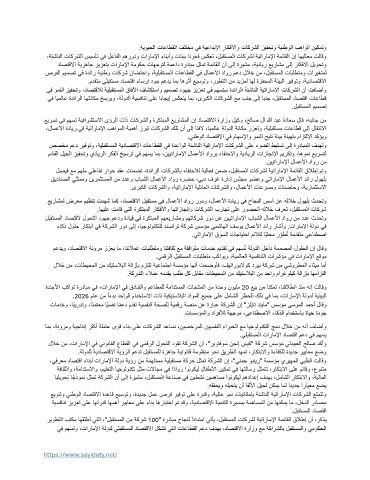 ،ةئشانلا تاكرشلا سيسأت يف لعافلا مهرودو تاراملإا ءانبأو تانبب انرخف سكعت ،لبقتسملا تاكرشل ةيتاراملإا ةمئاقلا نإ اهيلاعم تلاقو
