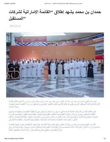 5/30/25, 3:46 PM رﺎﺑﺧﻸﻟ رﺎﺑﺳﻣ – ”لﺑﻘﺗﺳﻣﻟا تﺎﻛرﺷﻟ ﺔﯾﺗارﺎﻣﻹا ﺔﻣﺋﺎﻘﻟا“ قﻼطإ دﮭﺷﯾ دﻣﺣﻣ نﺑ نادﻣﺣ