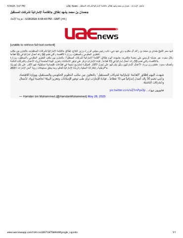 5/30/25, 3:47 PM UAE News - لﺑﻘﺗﺳﻣﻟا تﺎﻛرﺷﻟ ﺔﯾﺗارﺎﻣﻹا ﺔﻣﺋﺎﻘﻟا» قﻼطإ دﮭﺷﯾ دﻣﺣﻣ نﺑ نادﻣﺣ - تارﺎﻣﻹا رﺎﺑﺧأ»