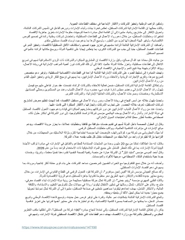 ،ةئشانلا تاكرشلا سيسأت يف لعافلا مهرودو تاراملإا ءانبأو تانبب انرخف سكعت ،لبقتسملا تاكرشل ةيتاراملإا ةمئاقلا نإ اهيلاعم تلاقو