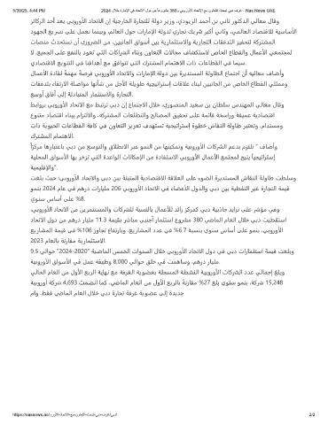 لﺎﻤﻋألا ةدﺎﻘﻟ ً ﺔﻤﻬﻣ ً ﺔﺻﺮﻓ ﻲﺑوروألا دﺎﺤﺗالاو تارﺎﻣإلا ﺔﻟود ﻦﻴﺑ ةﺮﻳﺪﺘﺴﻤﻟا ﺔﻟوﺎﻄﻟا عﺎﻤﺘﺟا نأ ﻪﻴﻟﺎﻌﻣ فﺎﺿأو