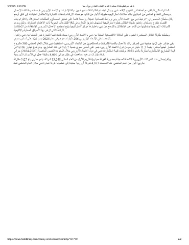 يﻮﻨﺳ سﺎﺳأ ﻰﻠﻋ %8 ﻮﻤﻨﺑ 2024 مﺎﻋ ﻲﻓ ﻢھرد تارﺎﯿﻠﻣ 206 ﻲﺑوروﻷا دﺎﺤﺗﻻا ﻲﻓ ءﺎﻀﻋﻷا.