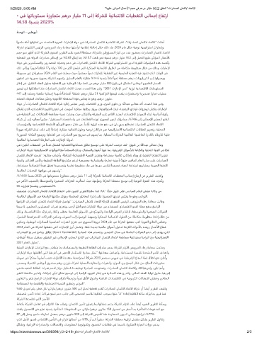.%14.58 ﺔﺒﺴﻨﺑ 2023 ﻲﻓ ﺎﻬﺗﺎﻳﻮﺘﺴﻣ ةزوﺎﺠﺘﻣ ،ﻢﻫرد رﺎﻴﻠﻣ 11 ﻰﻟإ ﺔﻛرشﻠﻟ ﺔﻴﻧﺎﻤﺘﺋالا تﺎﻴﻄﻐﺘﻟا ﻲﻟﺎﻤﺟإ عﺎﻔﺗرا ﻦﻋ ﺮﻳﺮﻘﺘﻟا ﻒﺸﻛو