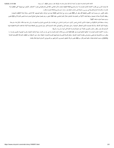 ﺔﯾوﻗ تﺎﯾطﻐﺗ ﺔﻛرﺷﻟا تﻣدﻗ ﺎﻣﻛ ،%7 ﺔﺑﺳﻧﺑ ﺔﻘطﻧﻣﻟا ﻲﻓ يرﯾدﺻﺗ قوﺳ رﺑﻛأ ﺔﯾدوﻌﺳﻟا تﻧﺎﻛ ،ﻲﻓارﻐﺟﻟا عزوﺗﻟا دﯾﻌﺻ ﻰﻠﻋو .ﺔﯾﺳﺎﯾﺳﻟا رطﺎﺧﻣﻟا نﯾﻣﺄﺗﻟ تﺻﺻﺧ %13و ،%17 لﺟﻷا ﺔﻠﯾوطو