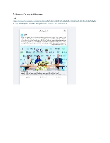 Publication: Facebook- Al Anaween Link: https://www.facebook.com/permalink.php?story_fbid=pfbid0z7oXe1LRgMpofJE6HCnEyXqAb4yJio xLY1qDxqedQahcUJvrWFSTr3cgxY2oruzCl&id=61567025013104