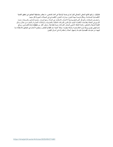 ةيمنتلا قيقحت يف نيبناجلا ةيكيمانيد سكعي ام ،يضاملا ماعلا يف % 4.2 ةبسنب ياوغارابلل يلامجلإا يلحملا جتانلا عفتراو ، 2024