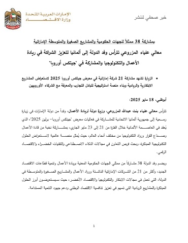 دﺎـــﺼﺘﻗﻻا تﺎﻋﺎطﻗ ﺔﯿﻤﻨﺘ و لﺎﻤﻋﻷا ةدﺎﯿر ﺒ ﺔﯿﻨﻌﻤﻟا ﺔﯿﻤوﻛﺤﻟا تﺎﻬﺠﻟا ﻲﻠﺜﻤﻤ نﻤ ً ﺎ ﻛرﺎـــﺸﻤ 38 ﺔﻟودﻟا دﻓو مـــﻀﯿ و