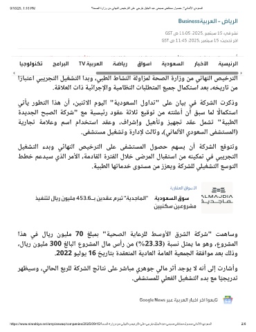 لﻮﺼﺣ ﻦﻋ (ﺔﻴﺤﺼﻟا ﻲﻧﺎﻤﻟﻷا يدﻮﻌﺴﻟا) "ﺔﻴﺤﺼﻟا ﺔﻳﺎﻋﺮﻠﻟ ﻂﺳوﻷا قﺮﺸﻟا ﺔﻛﺮﺷ" ﺖﻨﻠﻋأ