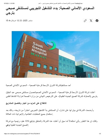 9/16/25, 1:16 PM رﺎﺑﺧأ — ﻲﺟرﺗﺑ ﻲﺣﺑﺻ ﻰﻔﺷﺗﺳﻣﻟ ﻲﺑﯾرﺟﺗﻟا لﯾﻐﺷﺗﻟا ءدﺑ :ﺔﯾﺣﺻﻟا ﻲﻧﺎﻣﻟﻷا يدوﻌﺳﻟا TradingView