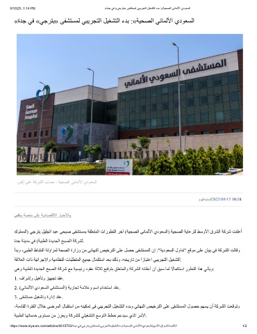 9/16/25, 1:14 PM «ةدﺟ ﻲﻓ «ﻲﺟرﺗﺑ» ﻰﻔﺷﺗﺳﻣﻟ ﻲﺑﯾرﺟﺗﻟا لﯾﻐﺷﺗﻟا ءدﺑ :«ﺔﯾﺣﺻﻟا ﻲﻧﺎﻣﻟﻷا يدوﻌﺳﻟا