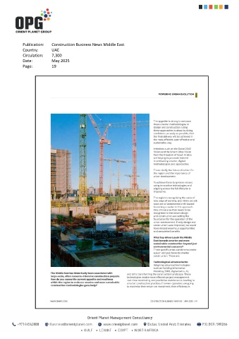 Publication: Construction Business News Middle East Country: UAE Circulation: 7,300 Date: May 2025 Page: 19