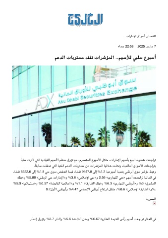 ﻚﻨﺑ»و %5.88 «ﻨﻃﻮﻟا ﺑد تارﺎﻣﻹا»و %3.6 «ﻣﻼﺳﻹا ﺑد»و 2.56 «يرﺎﺠﺘﻟا ﺑد» ﻢﻬﺳأ ﺖﻌﺟاﺮﺗ ﺔﻴﻟﺎﻤﻟا ﻓ