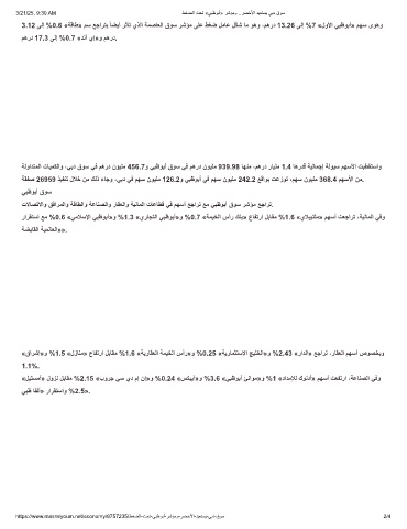 3.12 ﻰﻟإ %0.6 «ﺔﻗﺎط» مﺳ ﻊﺟارﺗﺑ ًﺎﺿﯾأ رﺛﺄﺗ يذﻟا ﺔﻣﺻﺎﻌﻟا قوﺳ رﺷؤﻣ ﻰﻠﻋ طﻐﺿ لﻣﺎﻋ لّﻛﺷ ﺎﻣ وھو ،مھرد 13.26 ﻰﻟإ %7 «لوﻷا ﻲﺑظوﺑأ» مﮭﺳ ىوھو