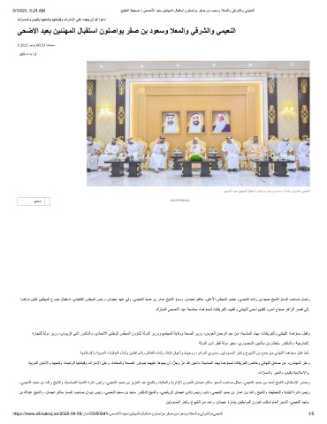 6/10/25, 9:24 AM ﺞﯾﻠﺧﻟا ﺔﻔﯾﺣﺻ | ﻰﺣﺿﻷا دﯾﻌﺑ نﯾﺋﻧﮭﻣﻟا لﺎﺑﻘﺗﺳا نوﻠﺻاوﯾ رﻘﺻ نﺑ دوﻌﺳو ﻼﻌﻣﻟاو ﻲﻗرﺷﻟاو ﻲﻣﯾﻌﻧﻟا