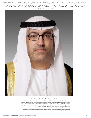 7/1/25, 10:47 AM ﻲﻧﺎﻣﻟرﺑﻟا لﻣﻌﻠﻟ ﻲﻟودﻟا موﯾﻟا ﺔﺑﺳﺎﻧﻣﺑ يدﺎﺣﺗﻻا ﻲﻧطوﻟا سﻠﺟﻣﻟا نوؤﺷﻟ ﺔﻟودﻟا رﯾزوو ﻊﻣﺗﺟﻣﻟا ﺔﯾﺎﻗوو ﺔﺣﺻﻟا رﯾزو سﯾوﻌﻟا دﻣﺣﻣ نﺑ نﻣﺣرﻟادﺑﻋ ﻲﻟﺎﻌﻣ ﺢﯾرﺻﺗ – Open Production
