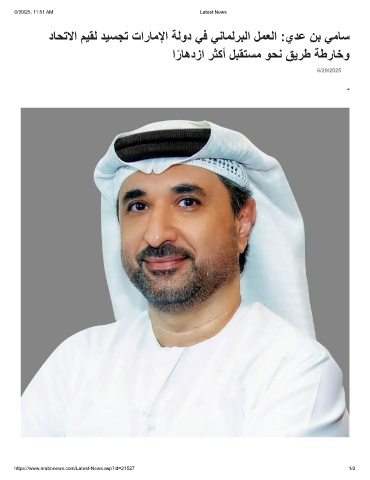 6/30/25, 11:51 AM Latest News دﺎﺣﺗﻻا مﯾﻘﻟ دﯾﺳﺟﺗ تارﺎﻣﻹا ﺔﻟود ﻲﻓ ﻲﻧﺎﻣﻟرﺑﻟا لﻣﻌﻟا :يدﻋ نﺑ ﻲﻣﺎﺳ ارﺎھدزا رﺛﻛأ لﺑﻘﺗﺳﻣ وﺣﻧ ﻖﯾرط ﺔطرﺎﺧو ً 6/29/2025 - https://www.arabbnews.com/Latest-News.asp?id=21527 1/2