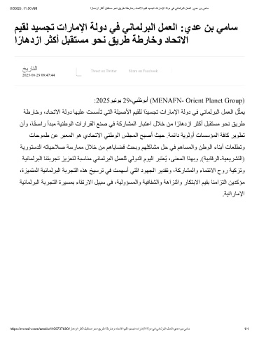 6/30/25, 11:50 AM ا ً رﺎھدزا رﺛﻛأ لﺑﻘﺗﺳﻣ وﺣﻧ ﻖﯾرط ﺔطرﺎﺧو دﺎﺣﺗﻻا مﯾﻘﻟ دﯾﺳﺟﺗ تارﺎﻣﻹا ﺔﻟود ﻲﻓ ﻲﻧﺎﻣﻟرﺑﻟا لﻣﻌﻟا :يدﻋ نﺑ ﻲﻣﺎﺳ
