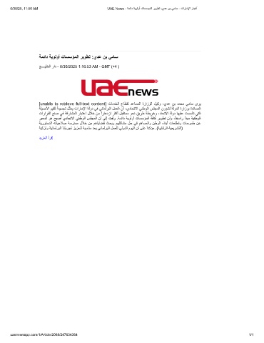 6/30/25, 11:50 AM UAE News - ﺔﻣﺋاد ﺔﯾوﻟوأ تﺎﺳﺳؤﻣﻟا رﯾوطﺗ :يدﻋ نﺑ ﻲﻣﺎﺳ - تارﺎﻣﻹا رﺎﺑﺧأ