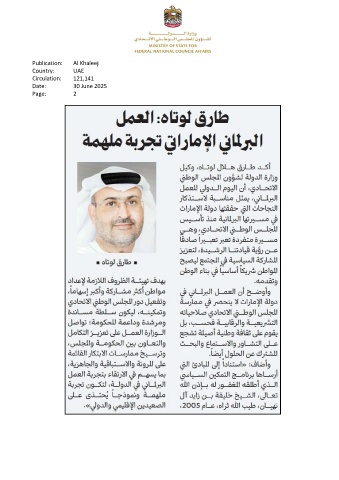 Publication: Al Khaleej Country: UAE Circulation: 121,141 Date: 30 June 2025 Page: 2