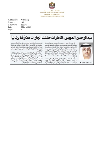 Publication: Al Khaleej Country: UAE Circulation: 121,141 Date: 30 June 2025 Page: 2