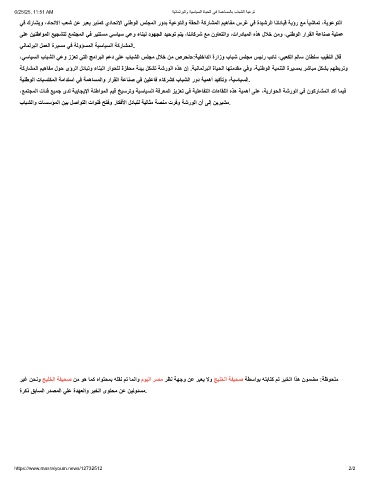 6/25/25, 11:51 AM ﺔﯾﻧﺎﻣﻟرﺑﻟاو ﺔﯾﺳﺎﯾﺳﻟا ةﺎﯾﺣﻟا ﻲﻓ ﺔﻣھﺎﺳﻣﻟﺎﺑ بﺎﺑﺷﻟا ﺔﯾﻋوﺗ