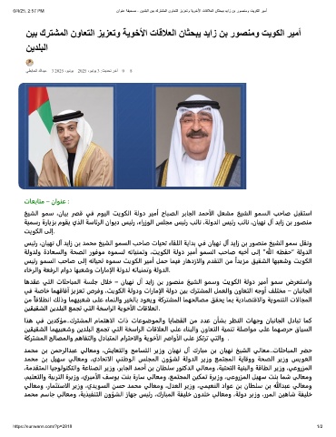 6/4/25, 2:57 PM ناوﻧﻋ ﺔﻔﯾﺣﺻ - نﯾدﻠﺑﻟا نﯾﺑ كرﺗﺷﻣﻟا نوﺎﻌﺗﻟا زﯾزﻌﺗو ﺔﯾوﺧﻷا تﺎﻗﻼﻌﻟا نﺎﺛﺣﺑﯾ دﯾاز نﺑ روﺻﻧﻣو تﯾوﻛﻟا رﯾﻣأ