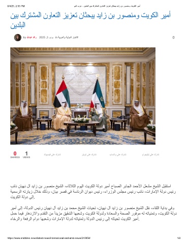 6/4/25, 2:55 PM مﯾﺎﺗ برﻋ - نﯾدﻠﺑﻟا نﯾﺑ كرﺗﺷﻣﻟا نوﺎﻌﺗﻟا زﯾزﻌﺗ نﺎﺛﺣﺑﯾ دﯾاز نﺑ روﺻﻧﻣو تﯾوﻛﻟا رﯾﻣأ