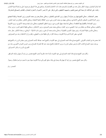 ﺪﮭﻓ ﺦﯿﺸﻟاو ءارزﻮﻟا ﺲﻠﺠﻣ ﺲﯿﺋر حﺎﺒﺼﻟا ﺪﻤﺣﻷا ﷲﺪﺒﻋ ﺪﻤﺣأ ﺦﯿﺸﻟاو ﺖﯾﻮﻜﻟا ﺪﮭﻋ ﻲﻟو حﺎﺒﺼﻟا ﺪﻤﺤﻟا ﺪﻟﺎﺧ حﺎﺒﺻ ﺦﯿﺸﻟا ..ﻲﺘﯾﻮﻜﻟا ﺐﻧﺎﺠﻟا ﻦﻣ ﺎھﺮﻀﺣ ﺎﻤﻛ