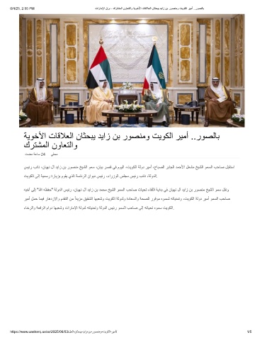 6/4/25, 2:55 PM تارﺎﻣﻹا قرﺑ - كرﺗﺷﻣﻟا نوﺎﻌﺗﻟاو ﺔﯾوﺧﻷا تﺎﻗﻼﻌﻟا نﺎﺛﺣﺑﯾ دﯾاز نﺑ روﺻﻧﻣو تﯾوﻛﻟا رﯾﻣأ ..روﺻﻟﺎﺑ
