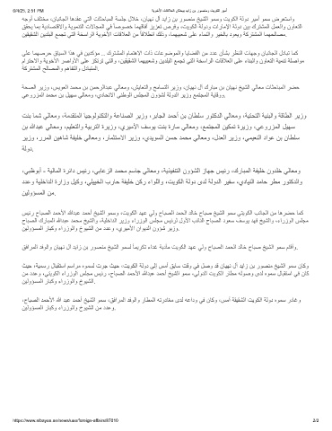 نﻣ ددﻋو ،ﻲﺗﯾوﻛﻟا ءارزوﻟا سﻠﺟﻣ سﯾﺋر ،حﺎﺑﺻﻟا دﻣﺣﻷا ﷲدﺑﻋ دﻣﺣأ ﺦﯾﺷﻟا وﻣﺳ ،ﻲﻟودﻟا تﯾوﻛﻟا رﺎطﻣ ﮫﻟوﺻو ىدﻟ هوﻣﺳ لﺎﺑﻘﺗﺳا ﻲﻓ نﺎﻛ