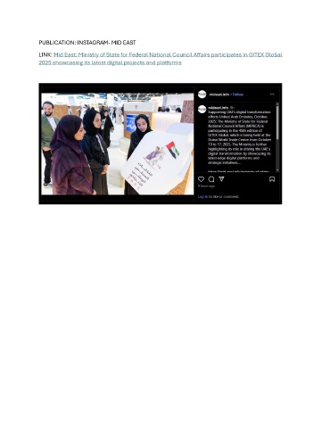 PUBLICATION: INSTAGRAM- MID EAST LINK: Mid East: Ministry of State for Federal National Council Affairs participates in GITEX Global 2025 showcasing its latest digital projects and platforms