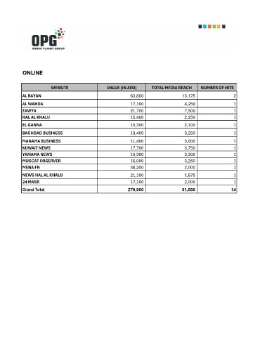 WEBSITE VALUE (IN AED) TOTAL MEDIA REACH NUMBER OF HITS