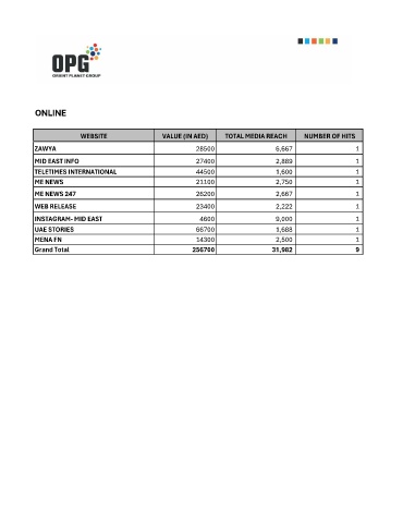 WEBSITE VALUE (IN AED) TOTAL MEDIA REACH NUMBER OF HITS